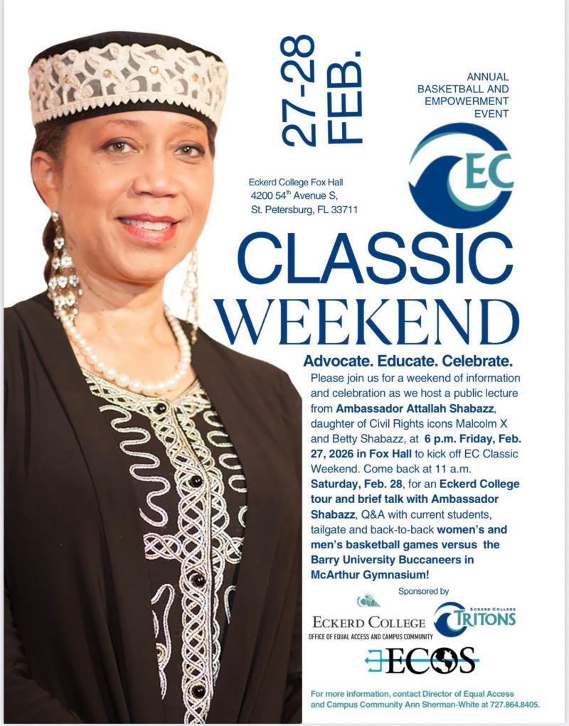 Attallah Shabazz, daughter of human rights activist Malcolm X, will speak at Eckerd on Feb. 27 from 6 p.m. to 7 p.m. in Fox Hall. Invited by the Unity Center, she will speak about the importance of diversity and human rights as a part of the EC Classic CPS Speaker Series.