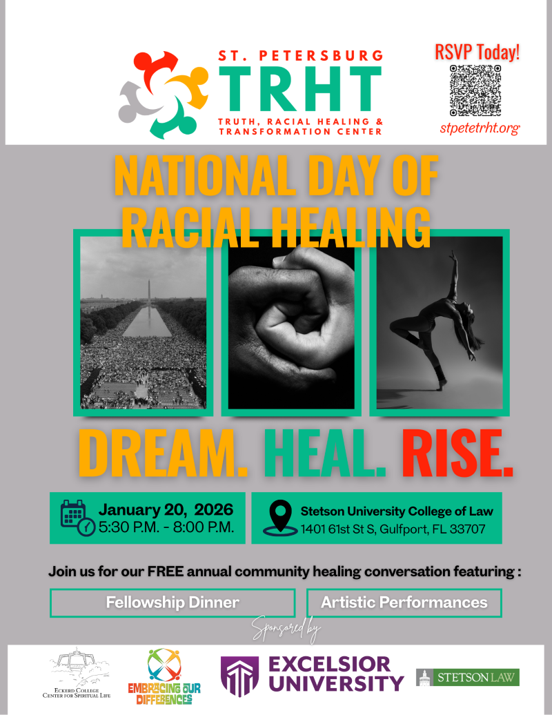 The St. Petersburg Truth, Racial Healing and Transformation (TRHT) Center celebrates unity, understanding, and healing as it holds an inspiring evening of connection, storytelling, and community building during the St. Petersburg National Day of Racial Healing.