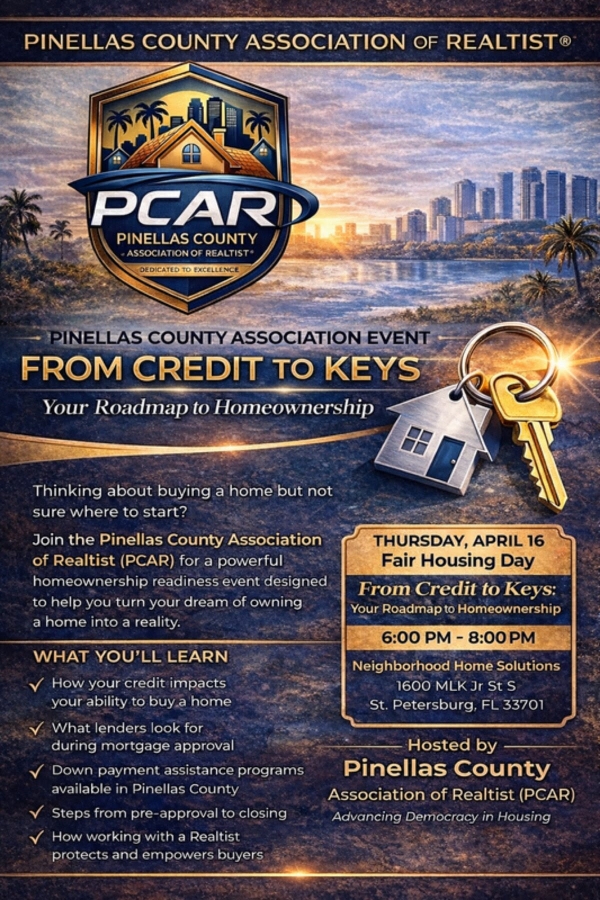 Join the Pinellas County Association of Realtists (PCAR) as we take our mission to the heart of local government. In observance of Fair Housing Month, we are gathering at St. Petersburg City Hall to advocate for equitable housing policies and ensure our community’s voice is heard. This is a vital opportunity for Realtists, real estate professionals, and community advocates to stand together and promote the dream of sustainable, affordable homeownership for all.