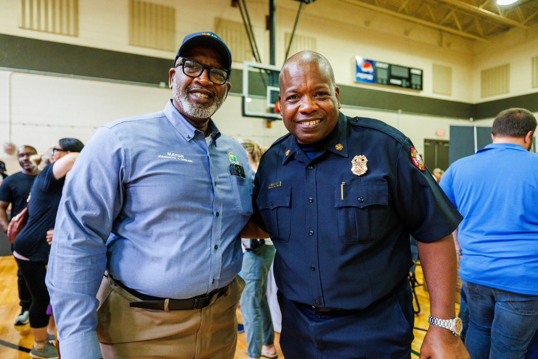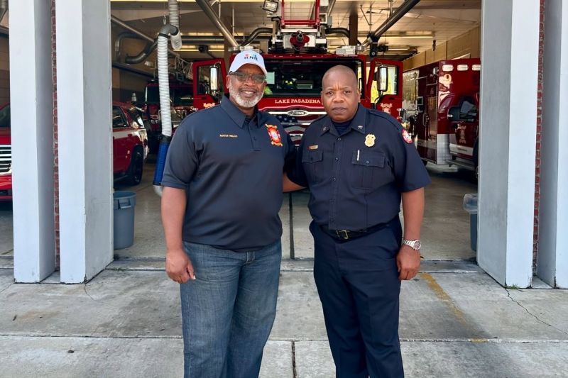 ‘The people of St. Petersburg elected me to move our city forward, and that is my focus,’ expressed Mayor Ken Welch. The mayor and Fire Chief Keith Watts at Fire Station 9 in Lake Pasadena.